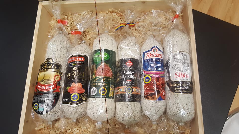 The Sibiu salami is packaged manually or by packaging machines, with the casing covered in noble mold, each individual piece wrapped in permeable, micro-perforated plastic foil.